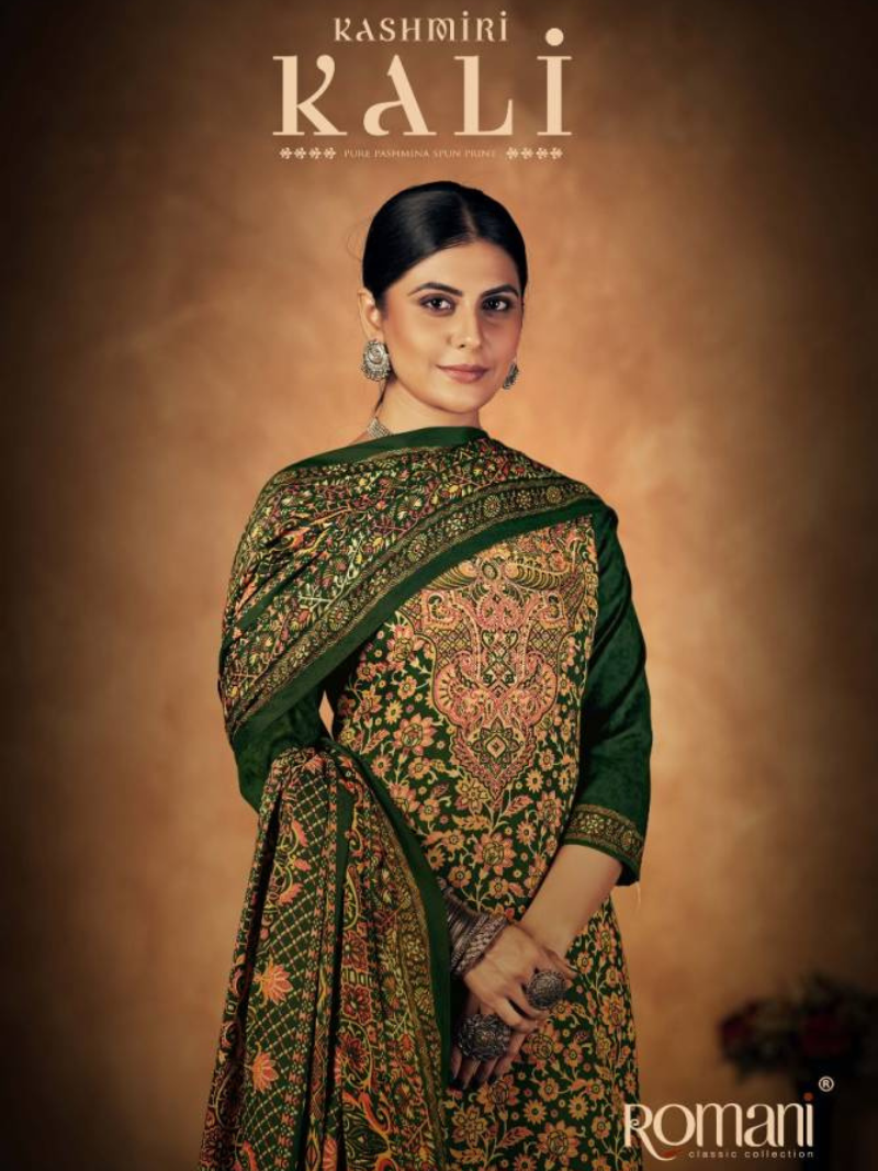 Romani Kashmiri Kali Stunning Spun Printed Pashmina Dress Materials Wholesale Catalog