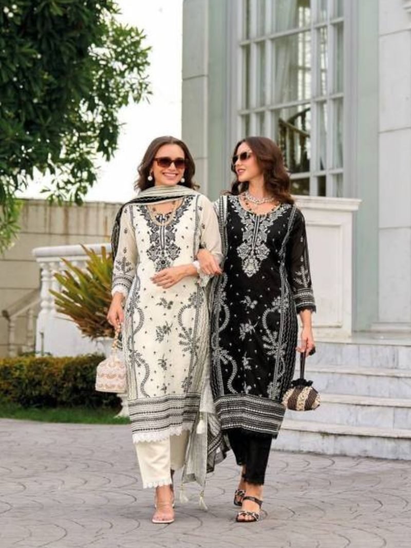 Zaveri Black And White Simi Embroidered Designer Readymade Salwar Suits Wholesale Catalog