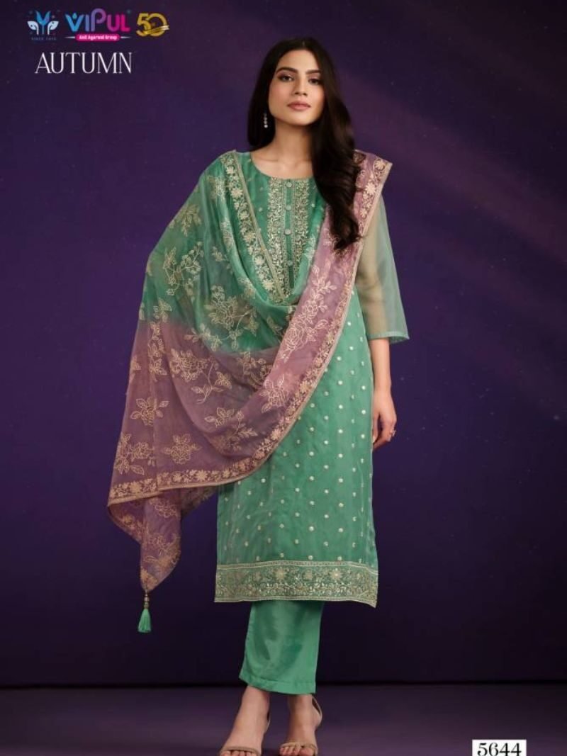 Vipul Autumn Organza Embroidery Designer Salwar Suits Wholesale Catalog