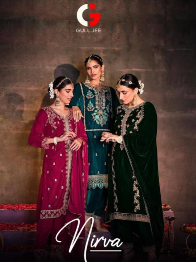Gull Jee Nirva Wedding Wear Embroidery Velvet Designer Salwar Suits Wholesale Catalog