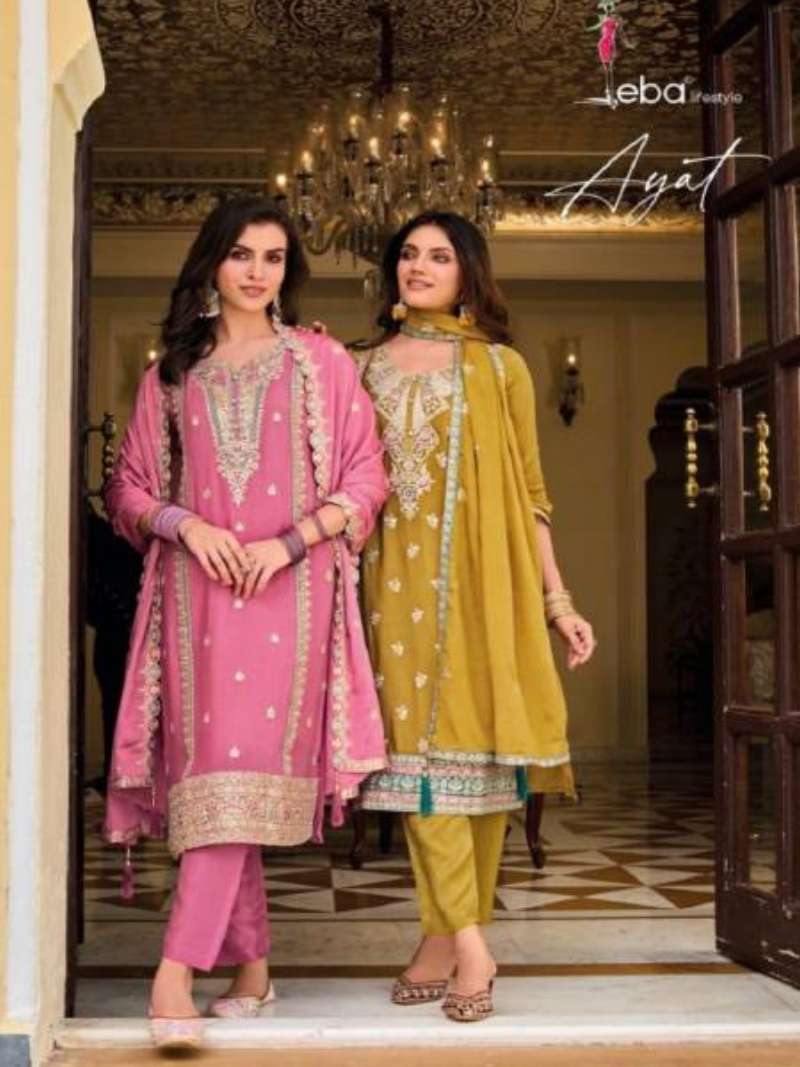 Eba Ayat Chinon Heavy Embroidery Designer Wholesale Salwar Suits Catalog
