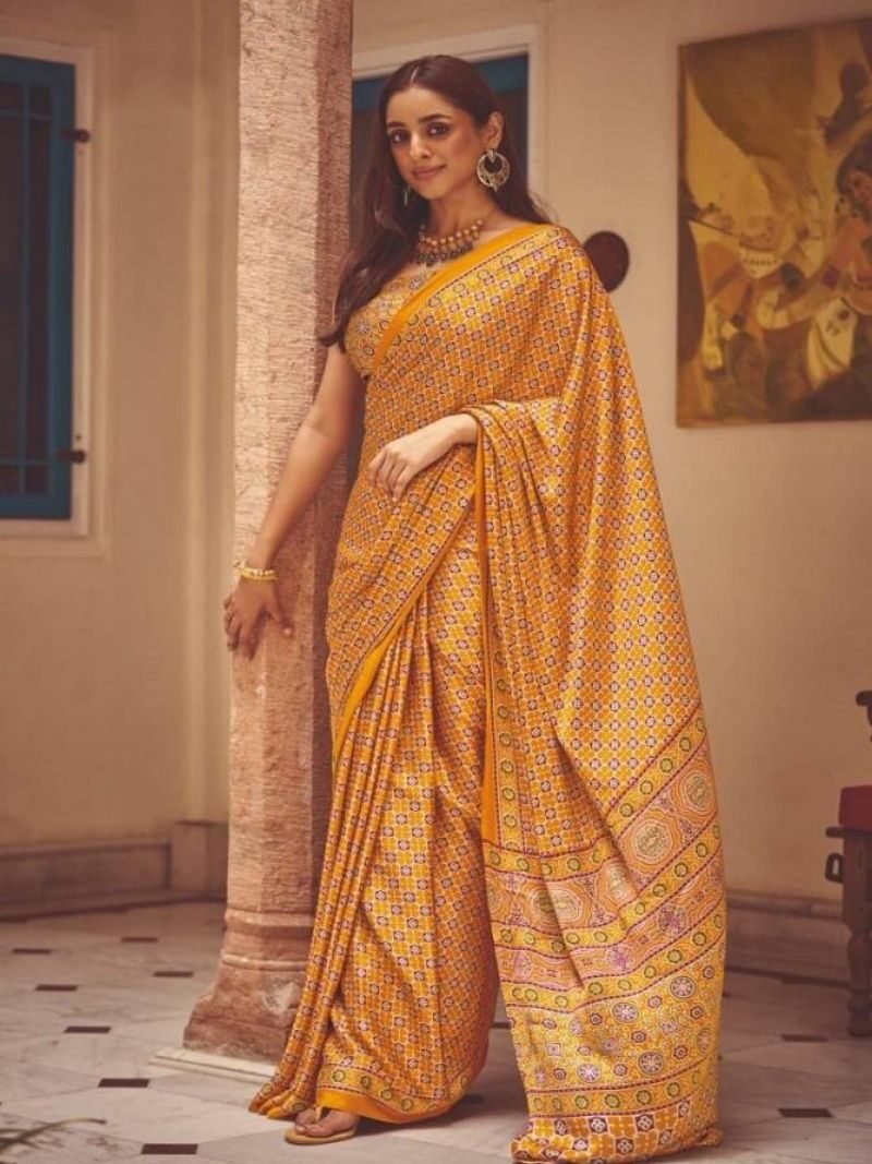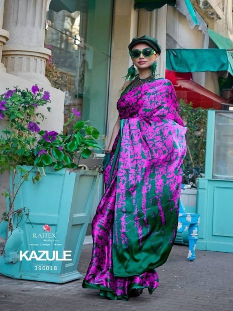 Rajtex Kazule Printed Satin Crepe Sarees Wholesale Catalog