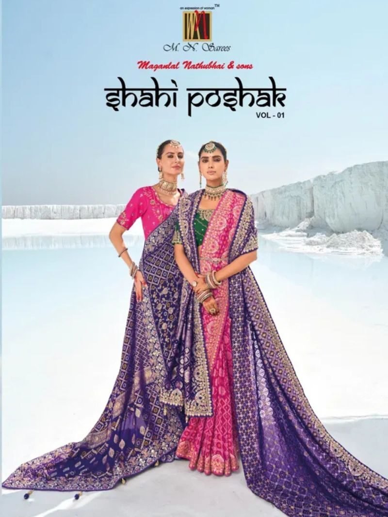 M.N Shahi Poshak Vol 1 Georgette Bandani Patola Sarees Wholesale Supplier