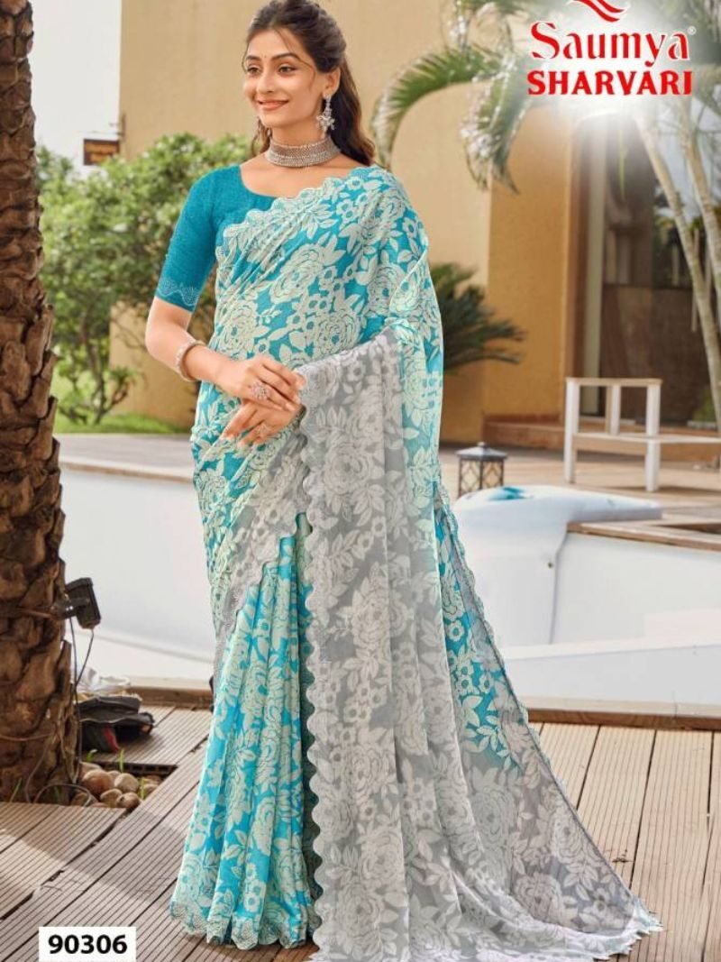 Saumya Sharvari Fancy Designer Border Printed Saree Wholesale Catalog