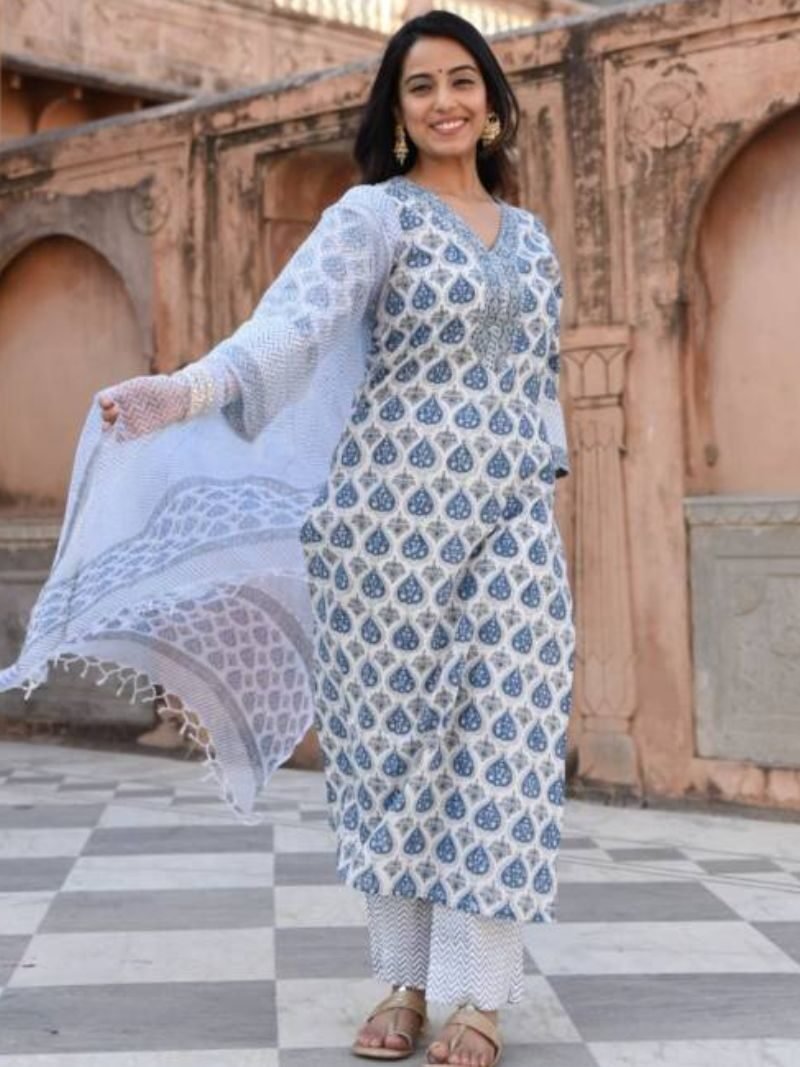 Kalaai Handwork Cotton Printed Kurti With Bottom Dupatta At Wholesale Price