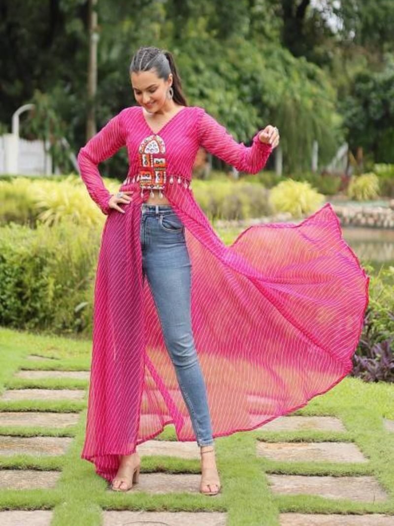 KA 1123 Festive Designer Leheriya Printed Navratri Special Kurtis Wholesaler