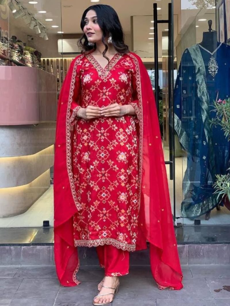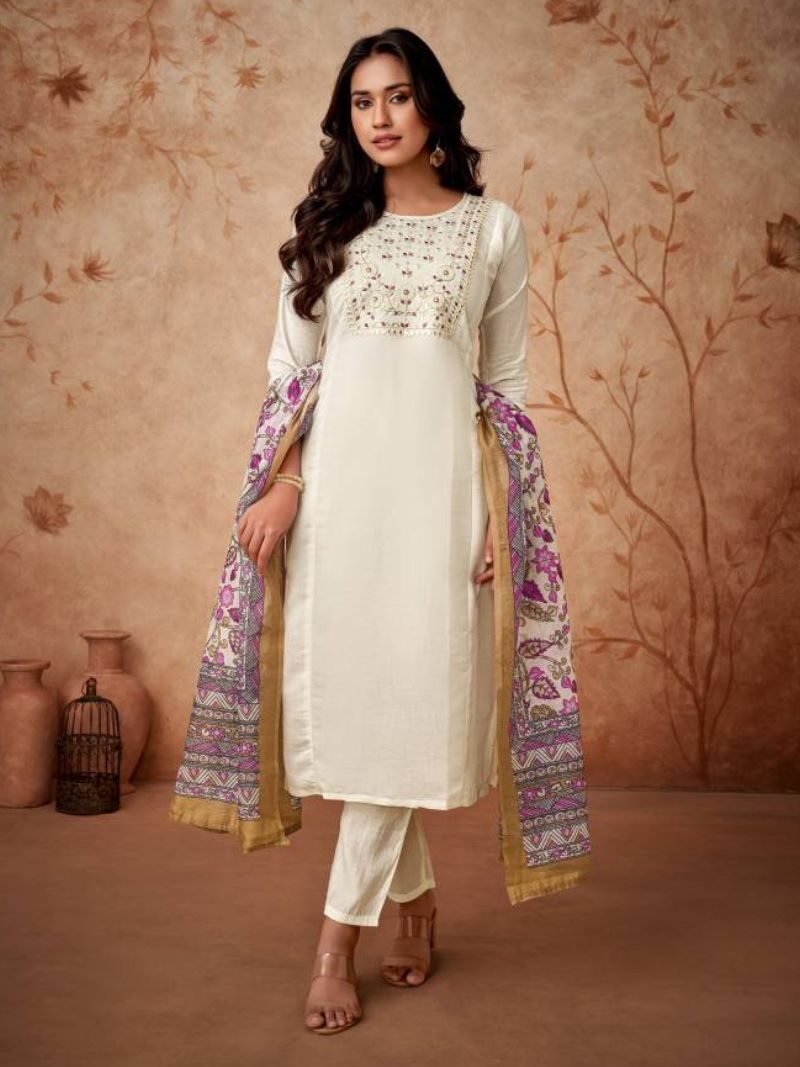 KF Vi Kritika Kalaai Viscose Organza Jacquard Kurti With Bottom Dupatta At Wholesale Price