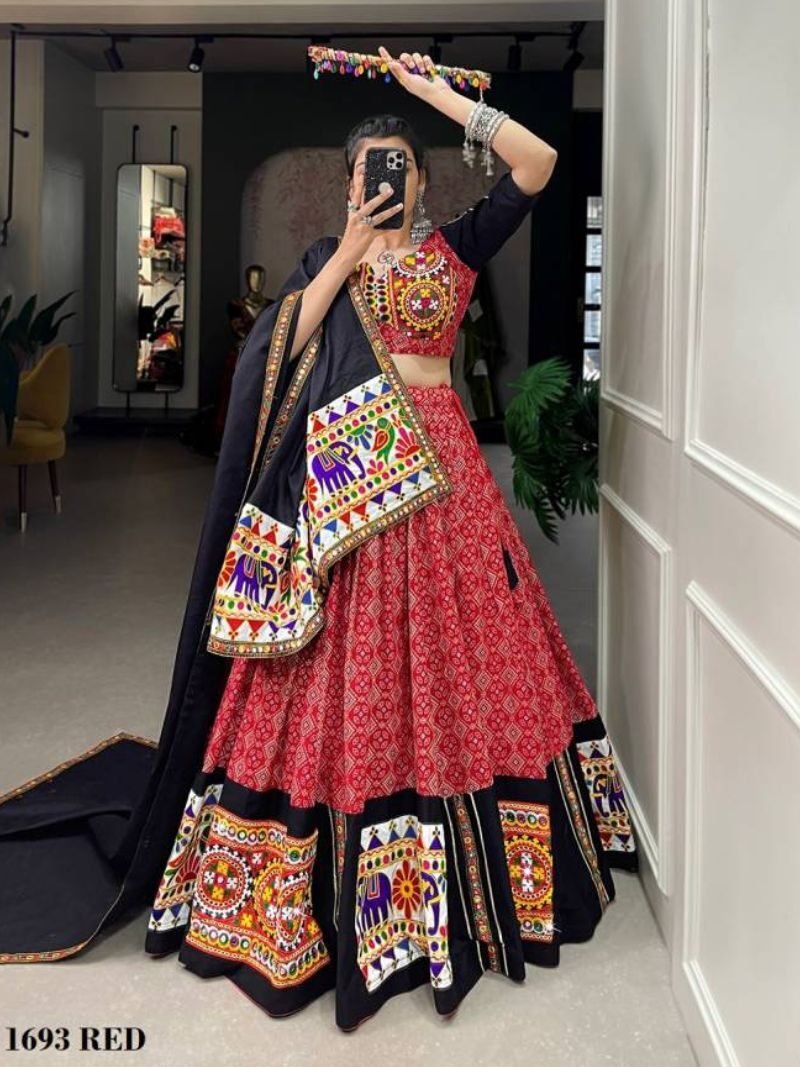 Aawiya 1693 Red Pure Cotton Designer Navratri Lehenga Choli At Wholesale Price