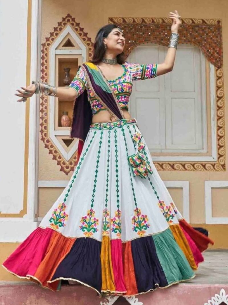1661WHT Gamthi Work Designer White Navratri Special Lehenga Choli Wholesaler