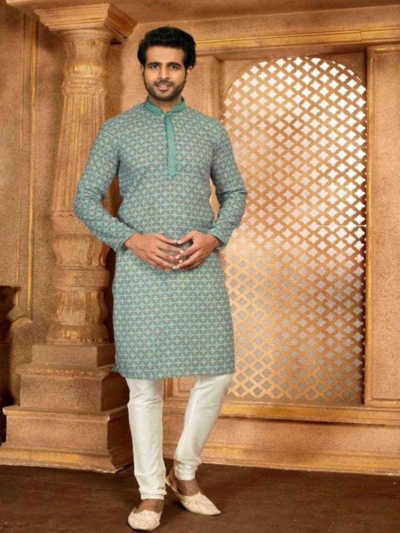 1633 Festive Wear Poly Cotton Printed Mens Kurta Pajama Wholesale Catalog