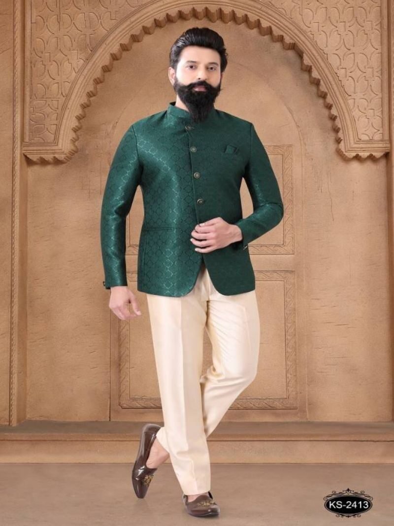 Function Wear Heavy Designer Indo Western Mens Jacket Set At Wholesale Price