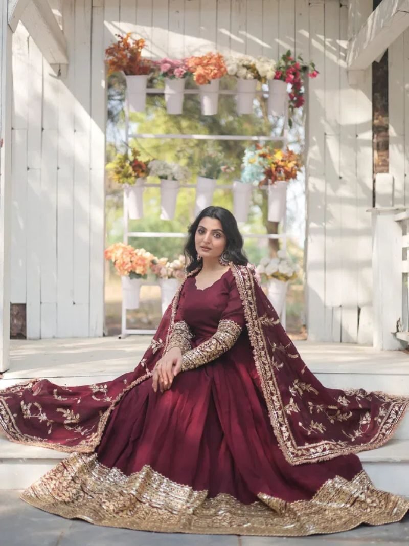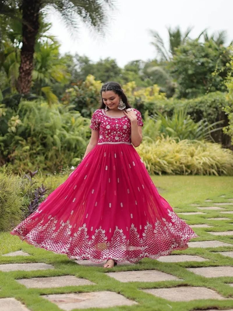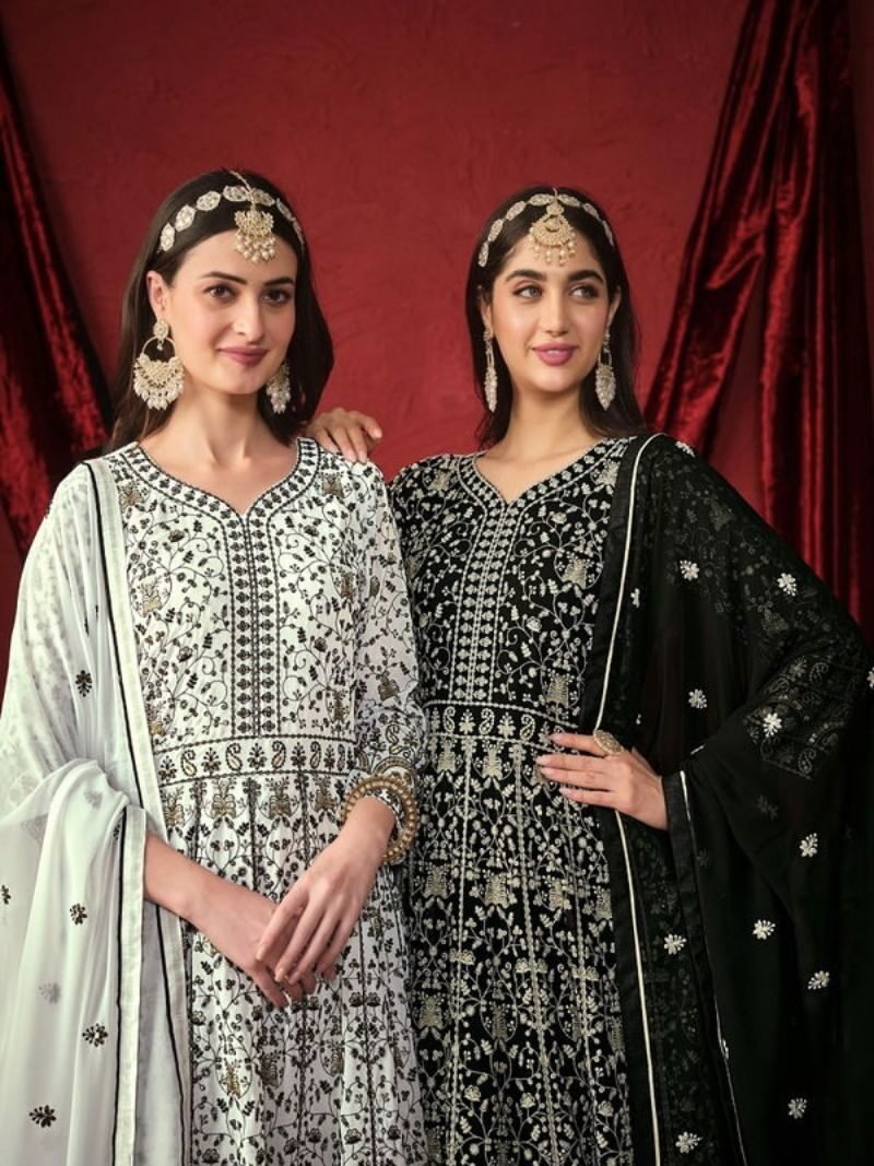 KA 1134 Faux Blooming Embroidery Designer Gown Wholesaler