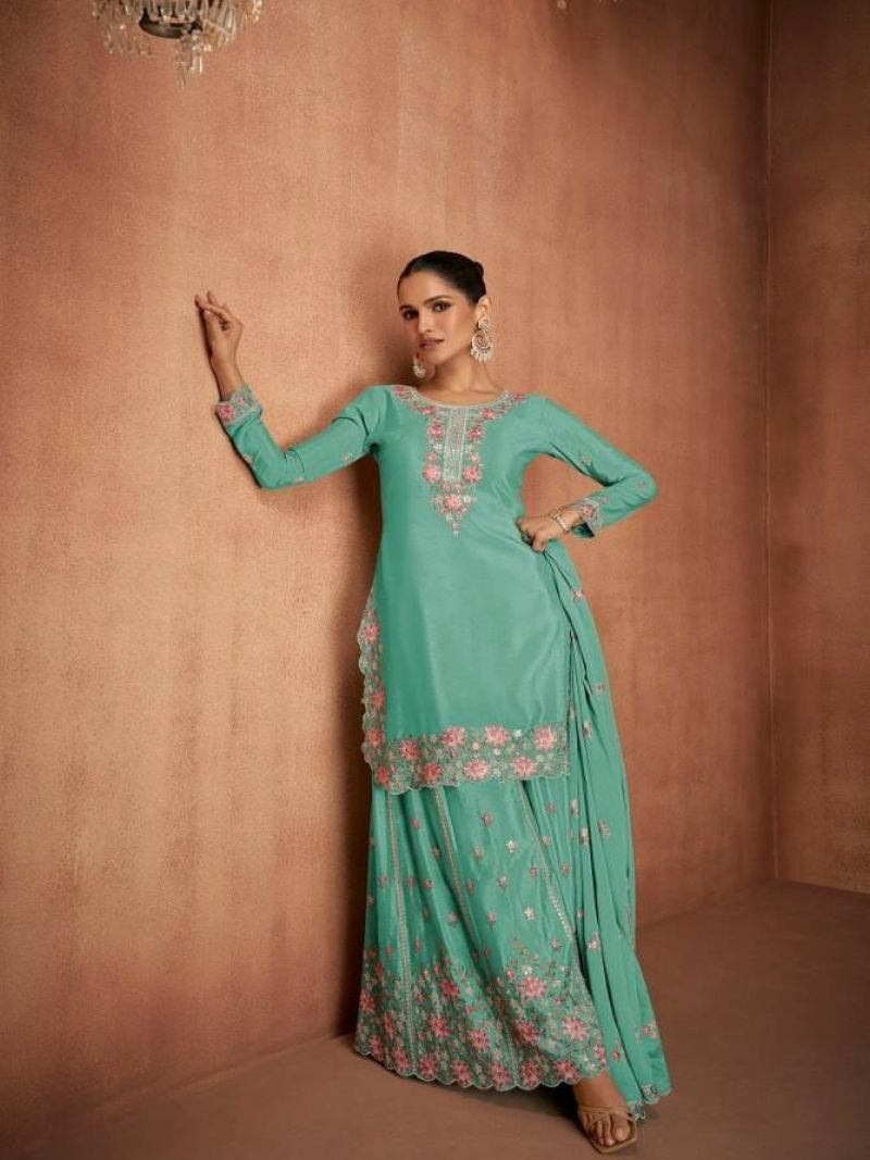 Sayuri Vihani Party Wear Designer Chinon Silk Readymade Suits Wholesale Catalog