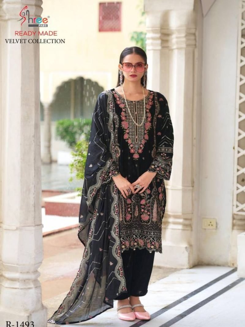 R 1493 Embroidery Designer Velvet Pakistani Readymade Suits Wholesale Catalog