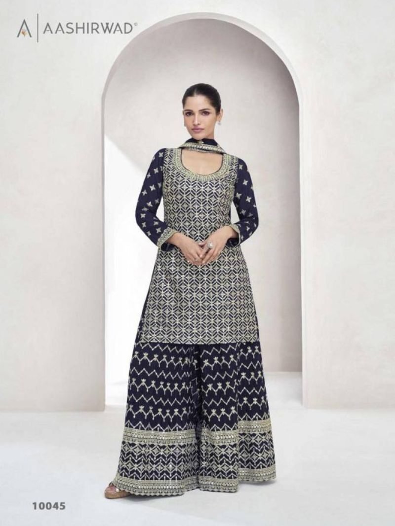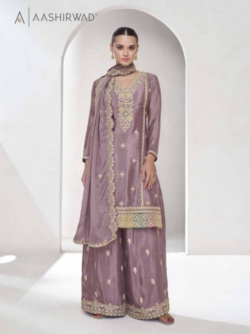 Aashirwad Vaanya Festival Special Designer Chinon Silk Readymade Suits Wholesale Supplier