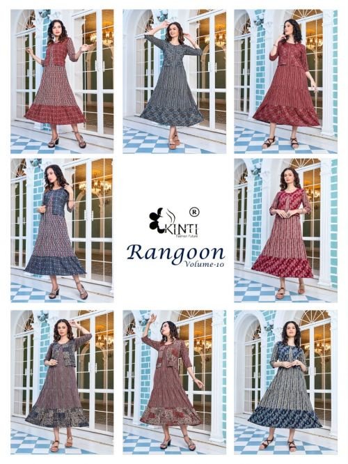 Kinti Rangoon Vol 10 Fancy Look Designer Anarkali Kurti Collection At Wholesale Price