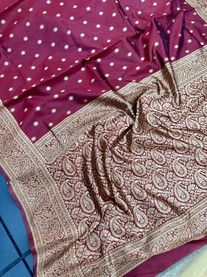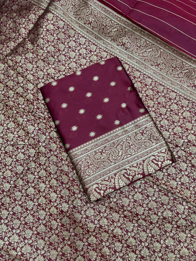 SOFT LICHI SILK CLOTH | Beautiful Art Silk Jacquard Border Saree With Unstitched Running Blouse For Women Wedding Wear Party | DESIGN : BEAUTIFUL RICH PALLU & JACQUARD PATTERN WORK ON ALL OVER THE SAREE. | BLOUSE : CONTRAST WITH EXCLUSIVE JACQUARD BORDER.