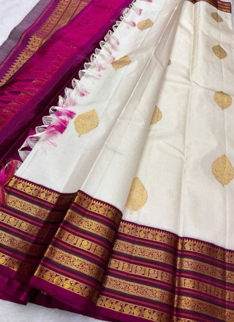 FabricSOFT LICHI SILK CLOTH | DESIGN : BEAUTIFUL RICH PALLU & JACQUARD PATTERN WORK ON ALL OVER THE SAREE | BLOUSE : CONTRAST WITH EXCLUSIVE JACQUARD BORDER.
