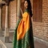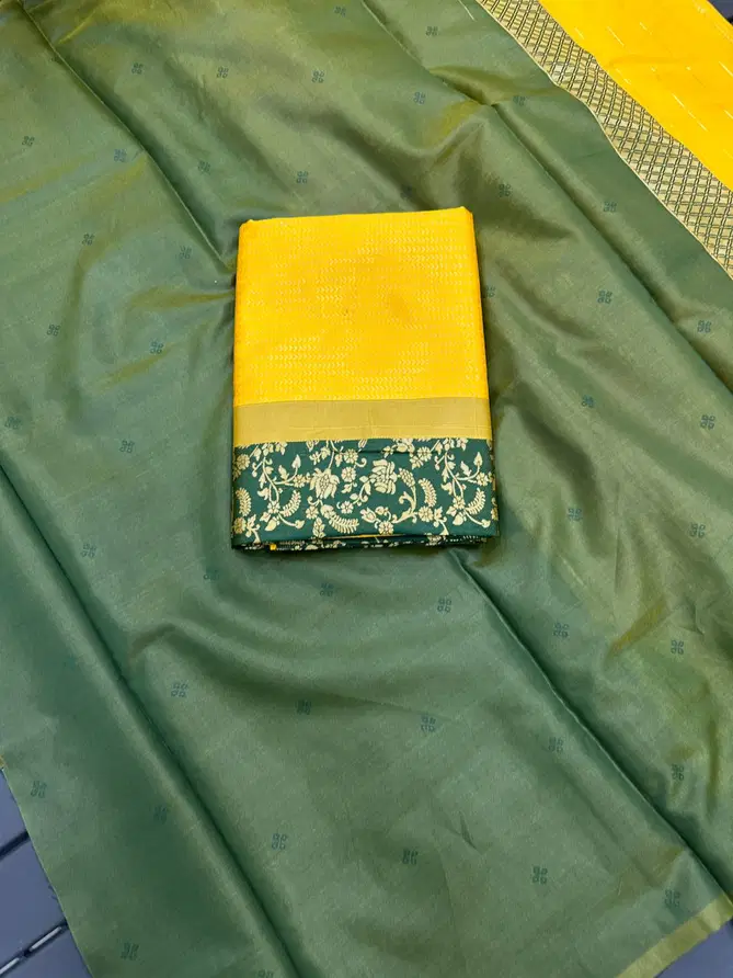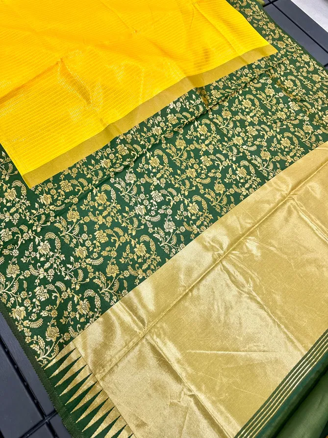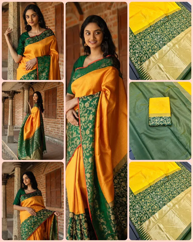 Aab Yellow Flower Soft Lichi Silk Saree At Wholesale Price