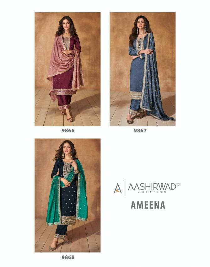 Aashirwad Ameena Festive Wear Premium Silk Readymade Salwar Suits Wholesale Catalog
