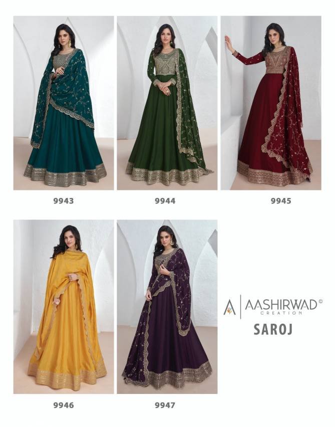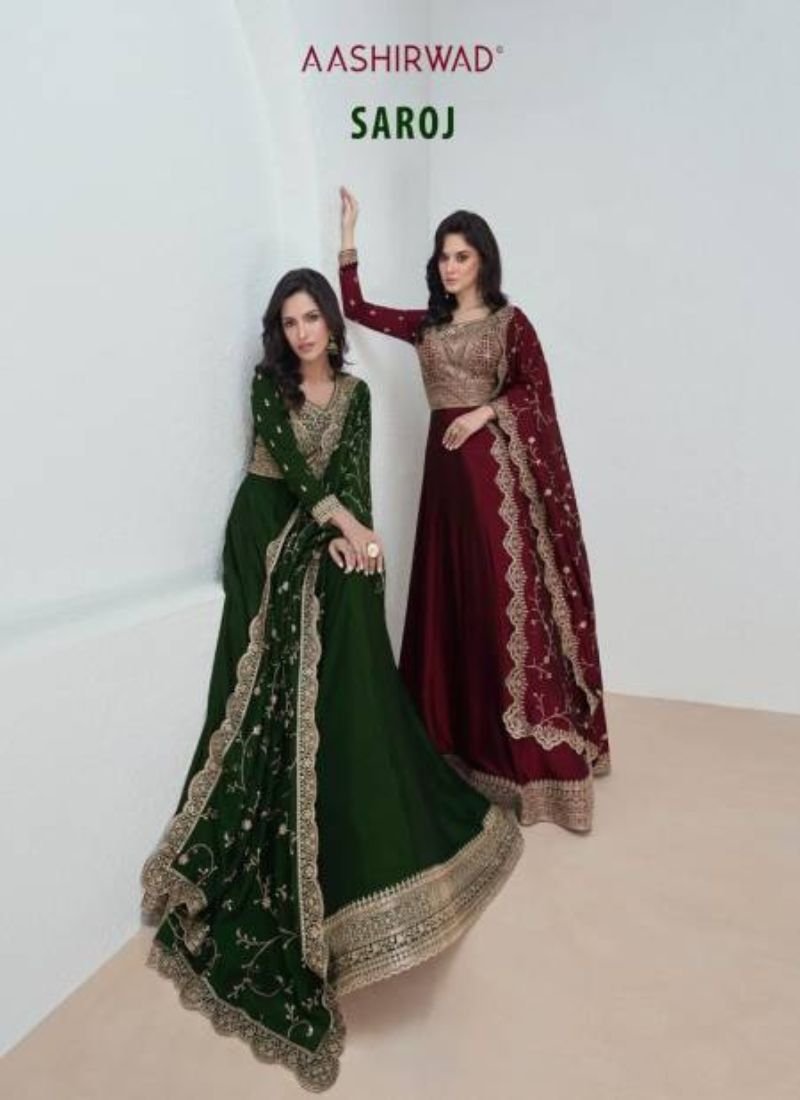 Aashirwad Saroj Heavy Designer Gown With Dupatta At Wholesale Price