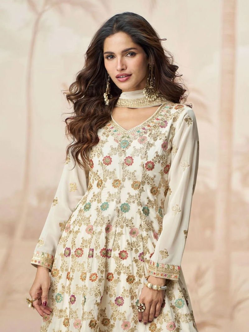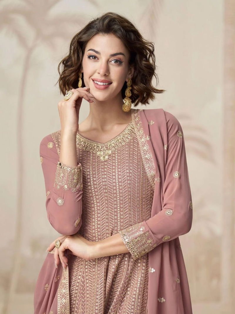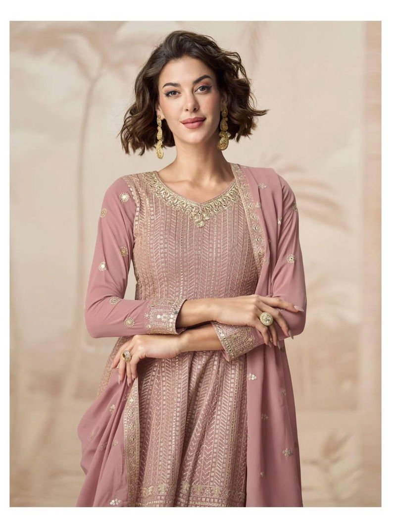 Top :- Heavy Fox Georgette With Emb.. Siquance Work Size :- Up To 42″ Stich Length :- Up To 39″Inner :- Crep (Attach) | Plazo :- Heavy Faux Georgette With Work Size :- Up To 44″ Full Stich Length :- Up To 4 Inner :- Crep (Attach) | Dupatta :- Heavy Fox Georgette With Print & Emb. Works