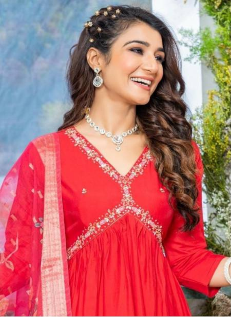 Aayesha Roman Silk Alia Cut Kurti With Bottom Dupatta At Wholesale Price