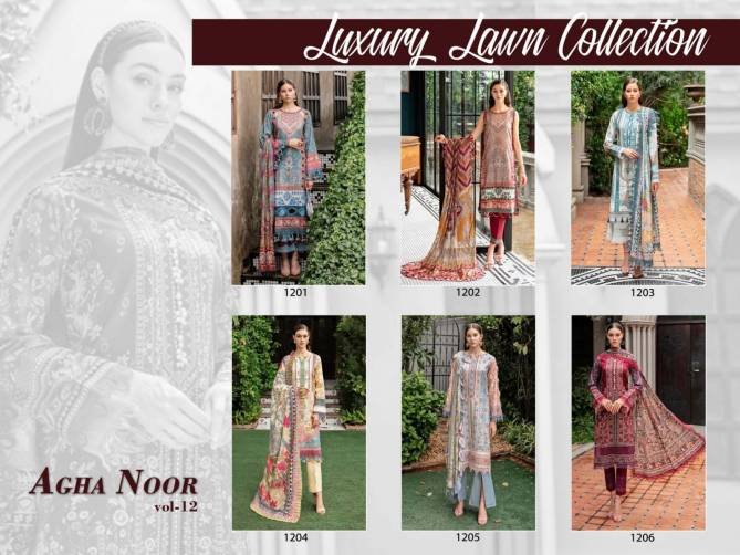 Agha Noor Vol 12 Printed Lawn Cotton Pakistani Dress Material Wholesale Catalog