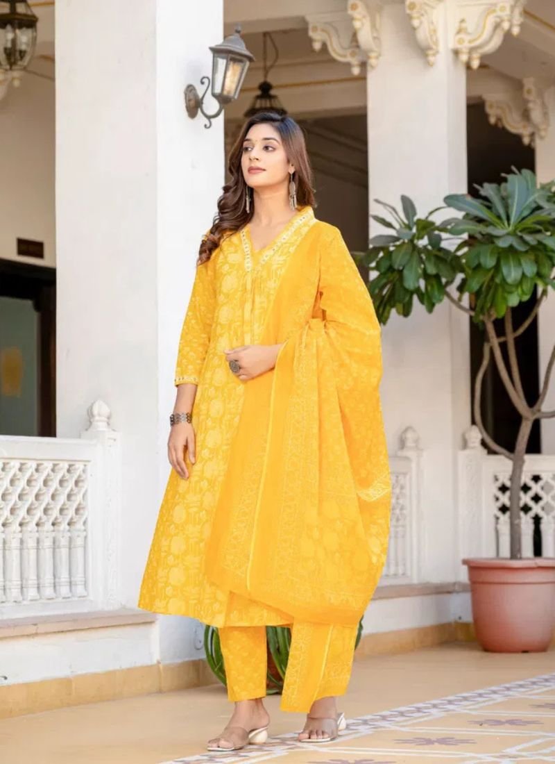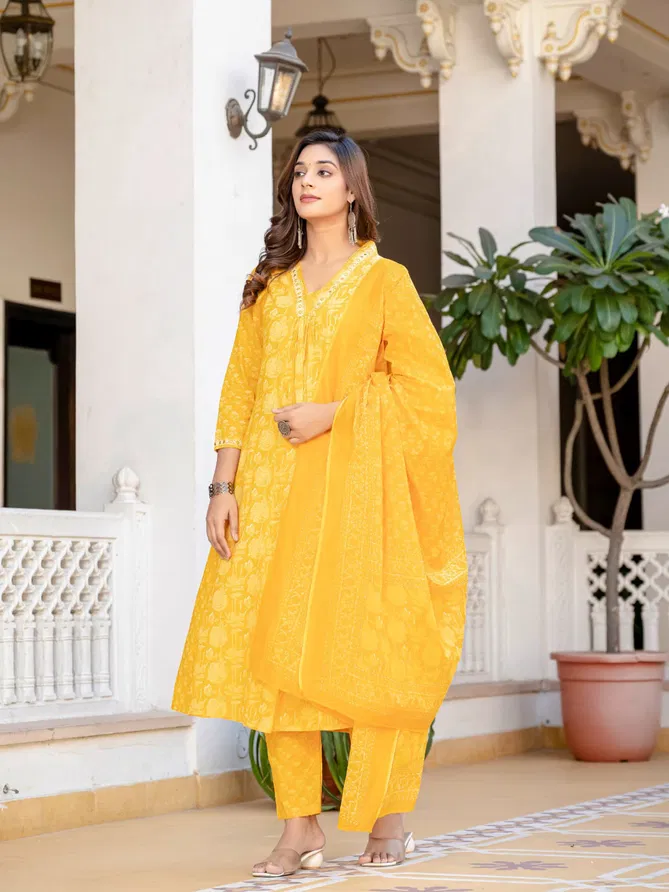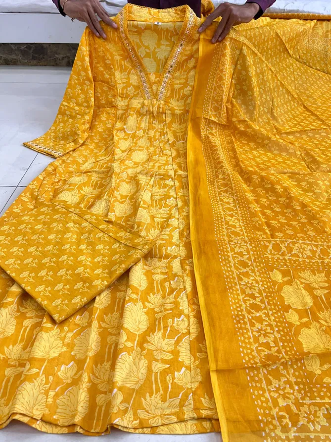 Akshar Pure Cotton Anarkali Kurti With Bottom Dupatta At Wholesale Price
