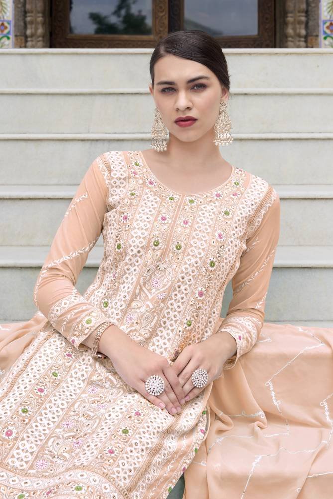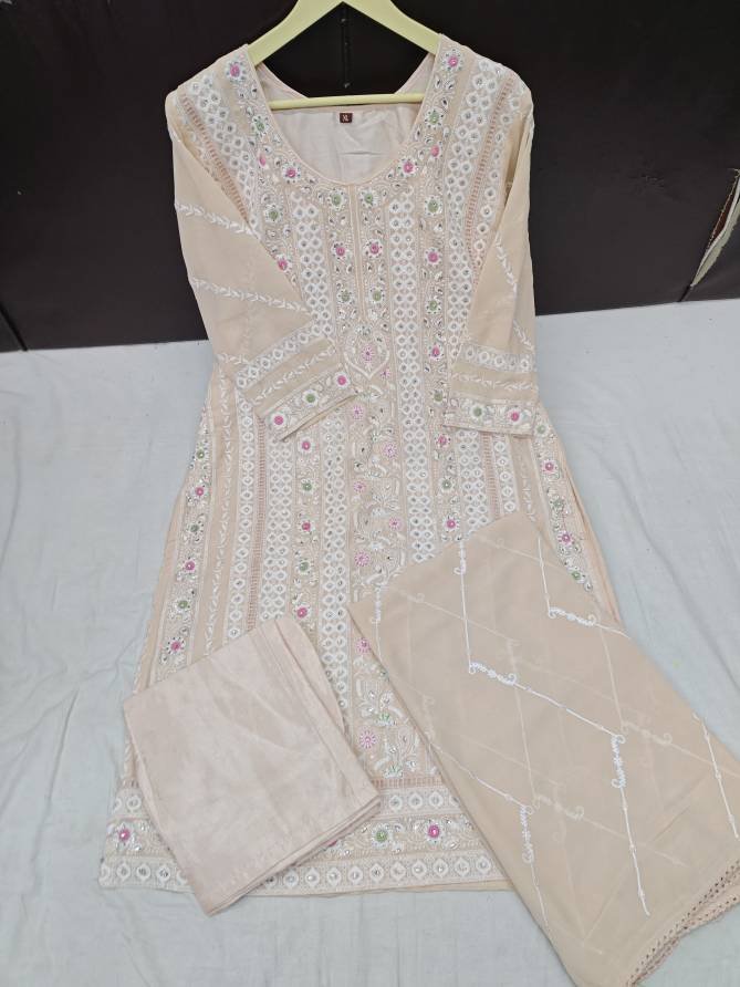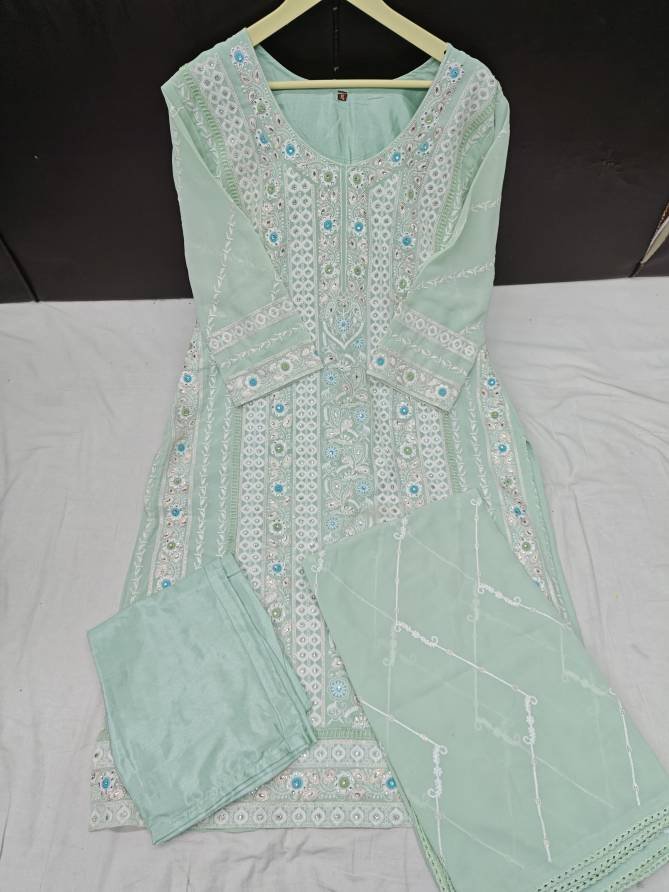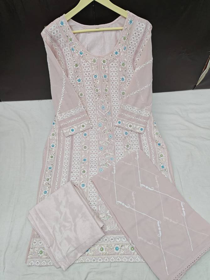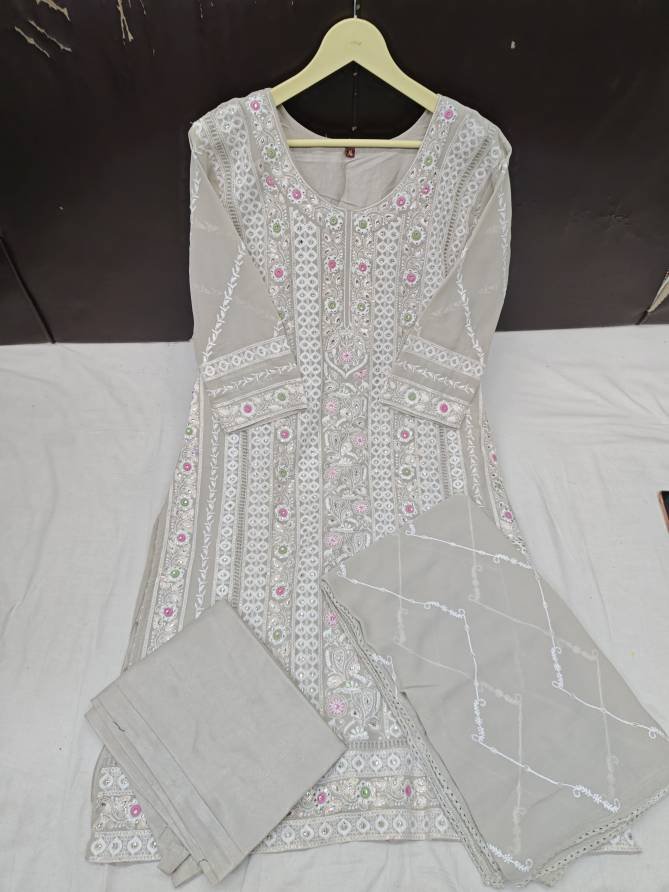 Top: Faux Georgette With Embroidery And Moti Work | Bottom: Stitched Dull Santoon | Dupatta: Faux Georgette With Embroidery And Four Side Lace (Pakistani Copy)