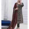 Top: Heavy Georgette With Heavy Embroidery (3mm) Rainbow Sequence Work | Top Inner: Attach Heavy Santoon | Bottom Inner: Heavy Santoon | Dupatta: Heavy Georgette With Heavy Embroidery (3mm) Rainbow Sequence Work | Top Length: Max up to 48″ | Semi Stitched ( Material ) ( PAKISTANI COPY)