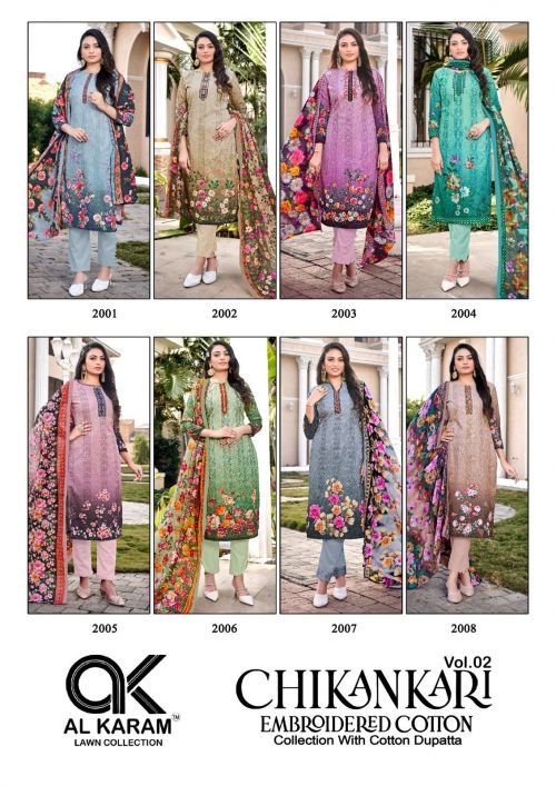 Al Karam Chikankari Vol 2 Regular Wear Karachi Cotton Dress Material Wholesale Collection