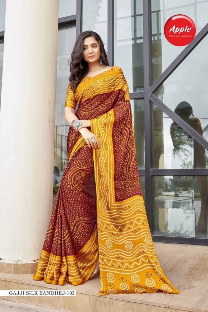 Apple Gajji Silk Bandhej New Traditional Bandhani Printed Sarees Wholesale Catalog