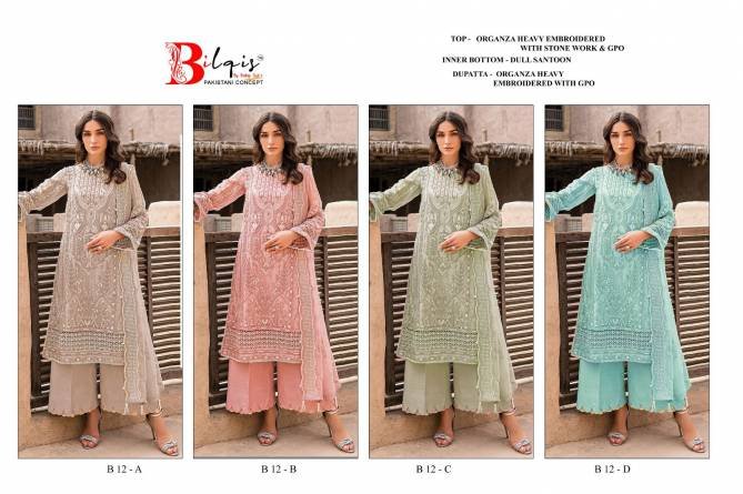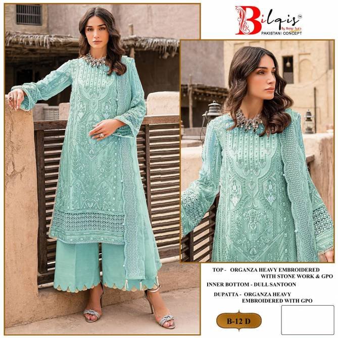 B 12 Bilqis Embroidery Organza Pakistani Suits Wholesale Catalog