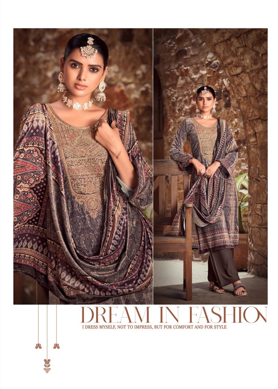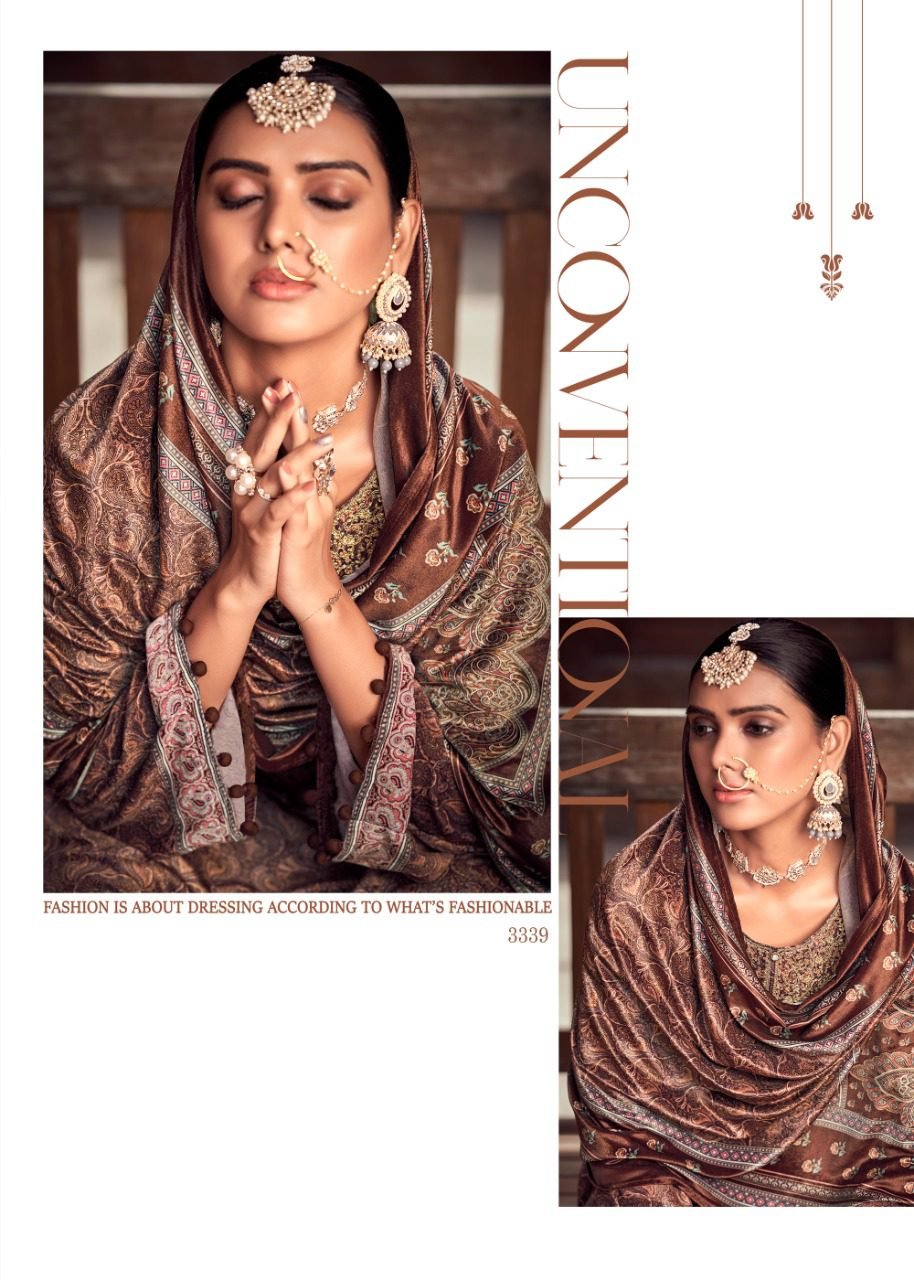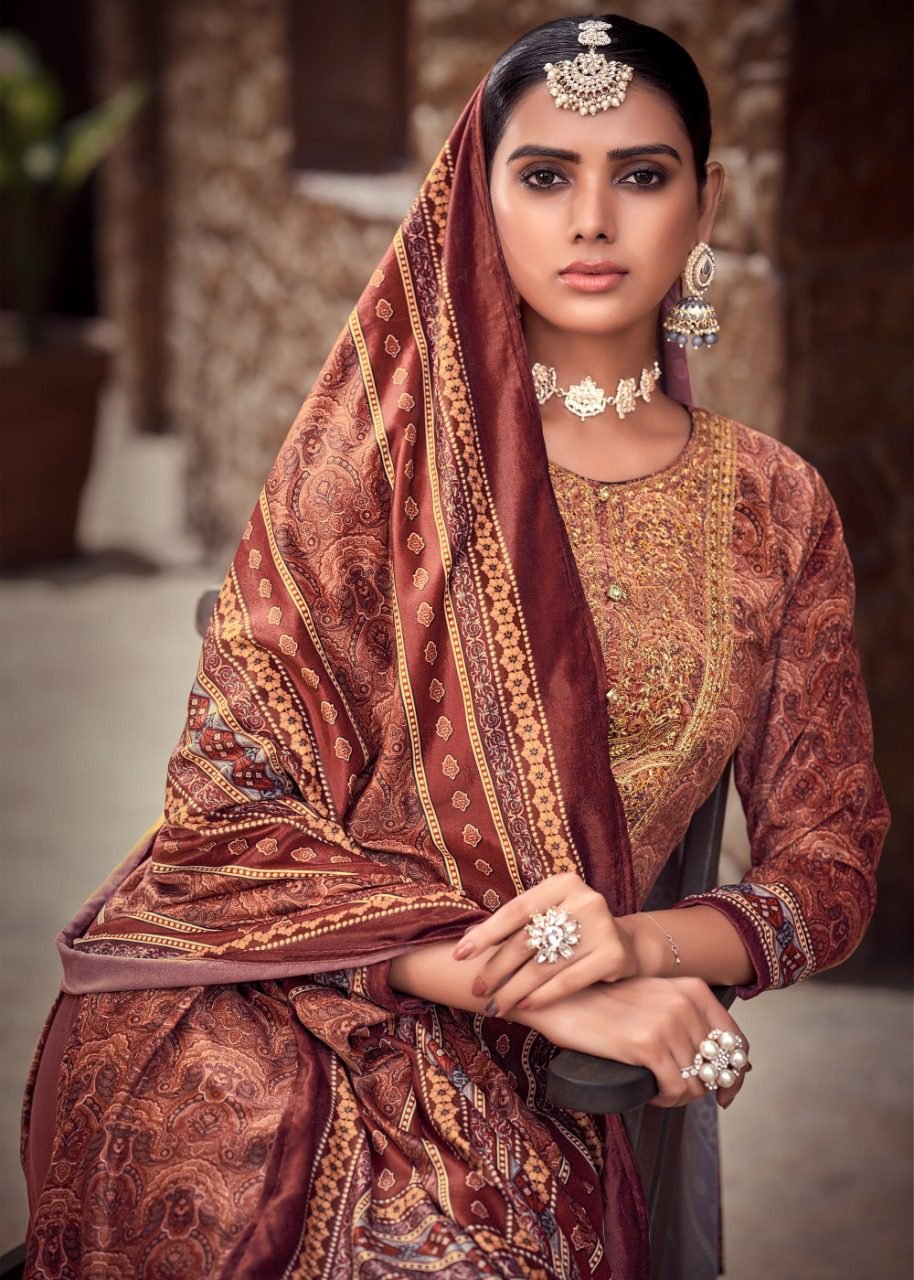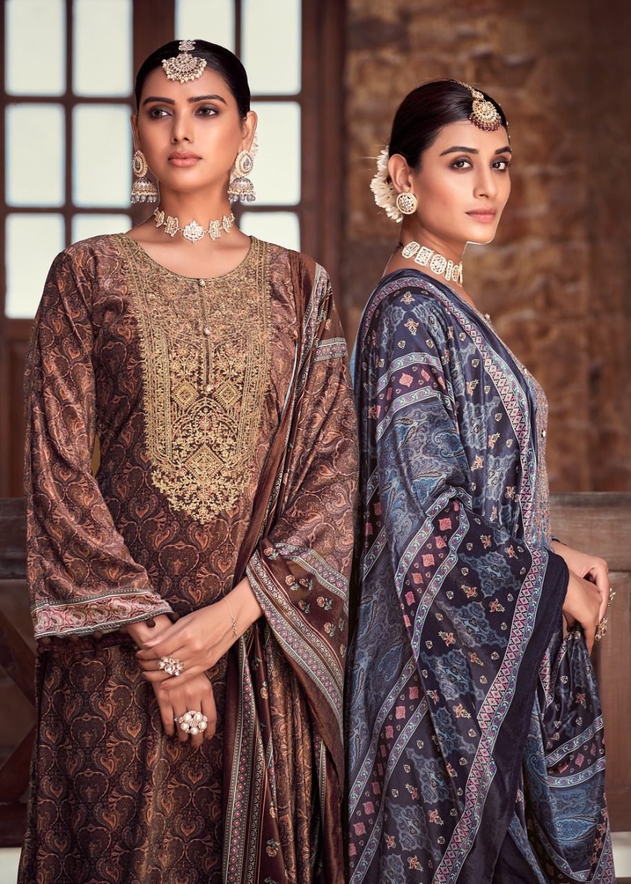 FabricFabric – Velvet digital print With Embroidery, Bottom – Pure pashmina, Dupatta – Velvel digital print with piping