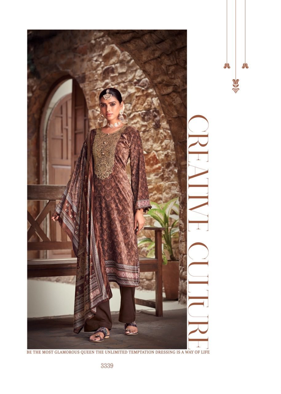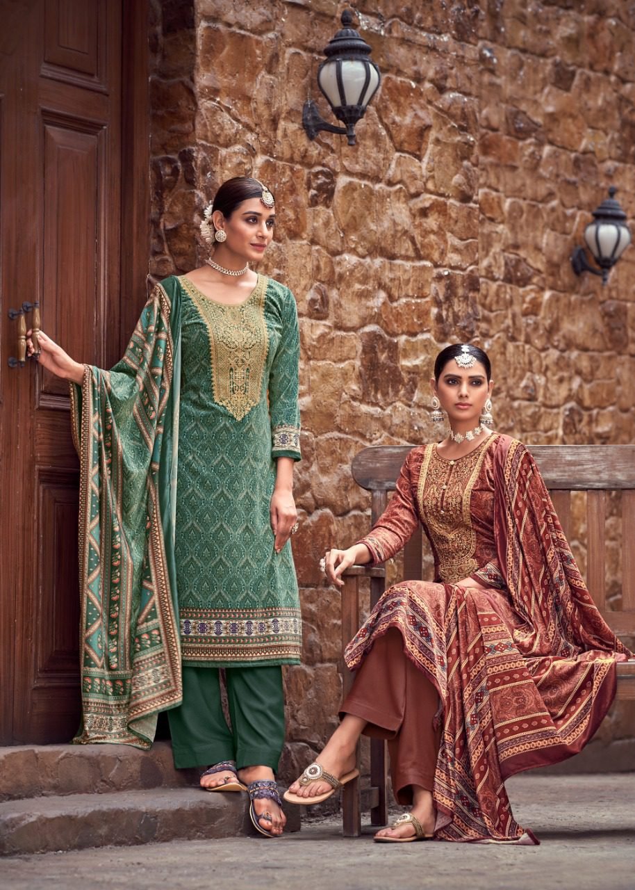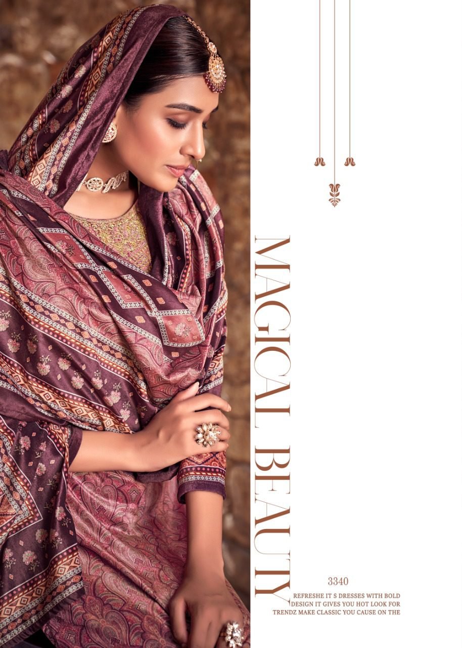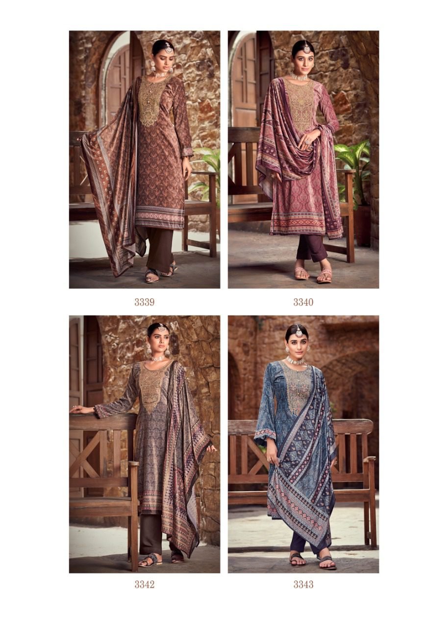 FabricFabric – Velvet digital print With Embroidery, Bottom – Pure pashmina, Dupatta – Velvel digital print with piping