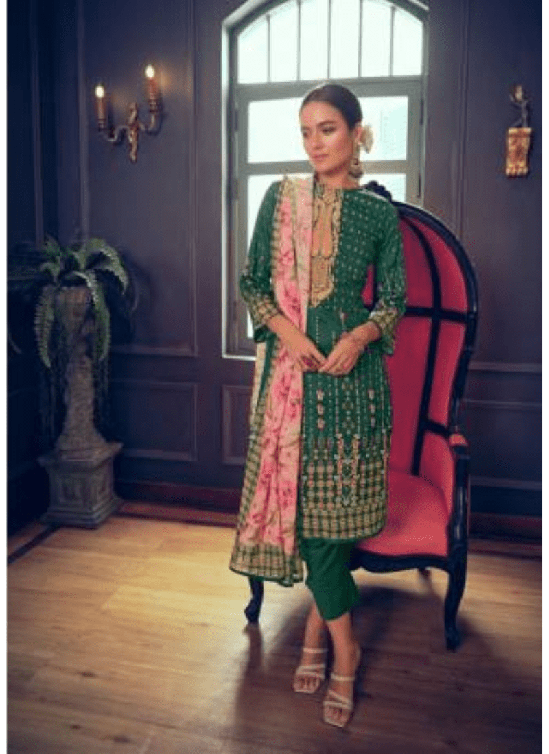 Top: Jam Cotton Digital Print With EXCLUSIVE HEAVY EMBROIDERY WORK (2.50 mtrs apx) | Dupatta: Cotton Muslin 4 Side Digital Print (2.30 mtrs apx) | Bottom: Cotton Salwar (3 mtrs apx)