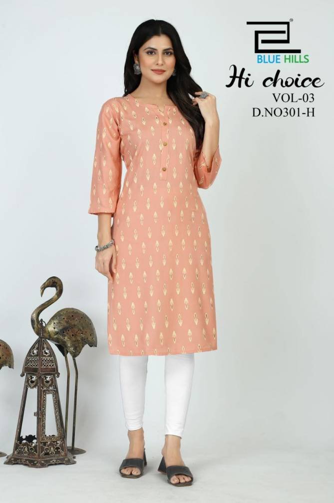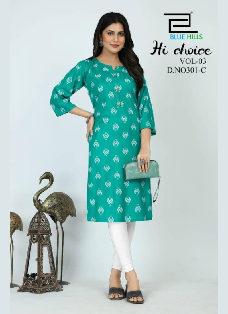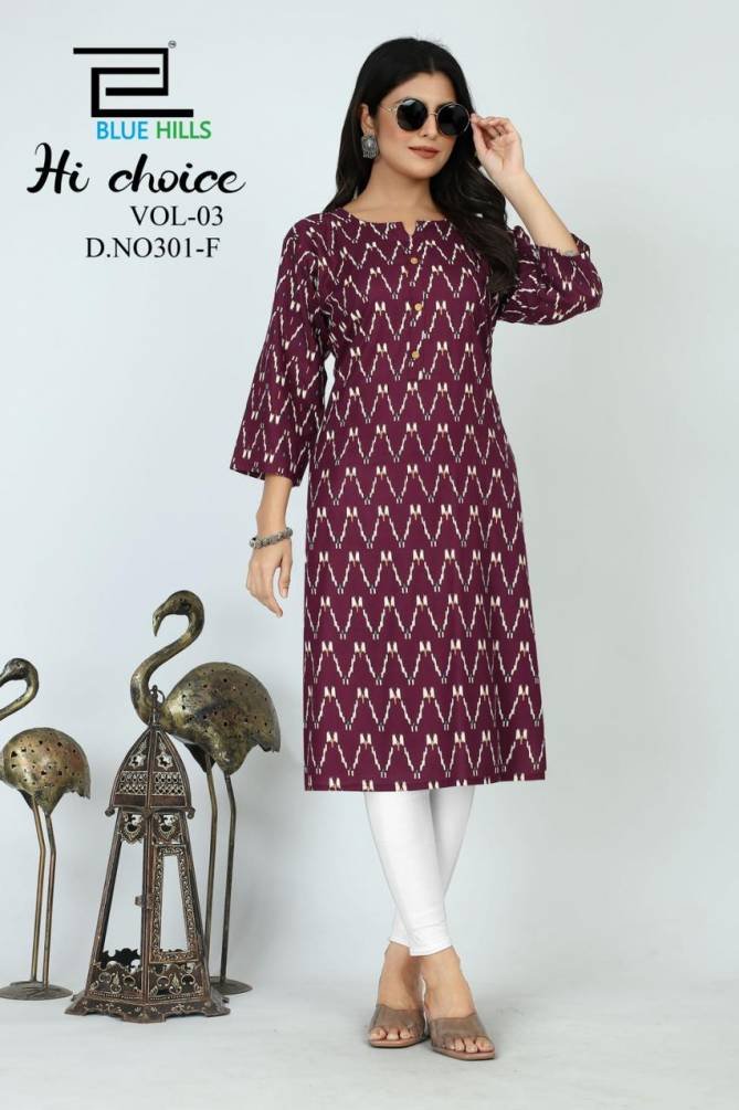 Blue Hills Hi Choice Vol 3 Daily Wear Printed Designer Kurtis Wholesale Catalog