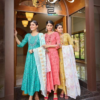 FabricPattern :- Long Gown With Neck Embroidery | Top:- RAYON 14 KG FOIL PRINT | Dupatta:- COTTON MAL PRINT With POM POM lace