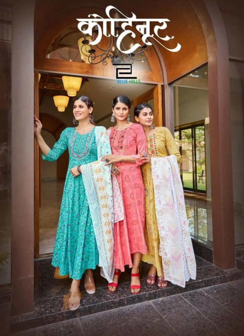 Blue Hills Kohinoor Party Wear Rayon Wholesale Printed Kurti With Dupatta Catalog