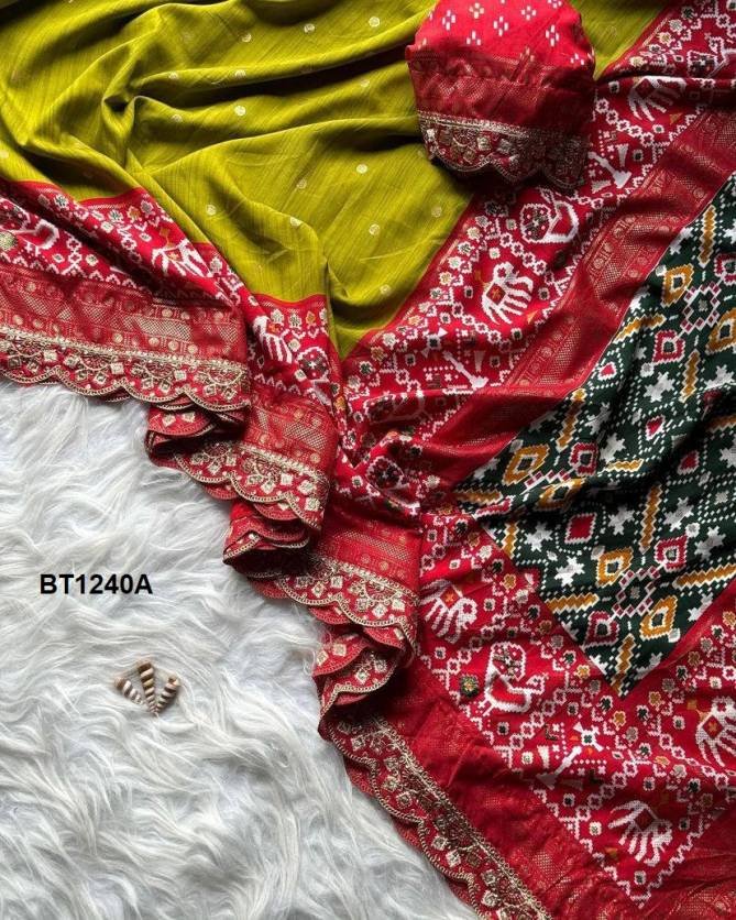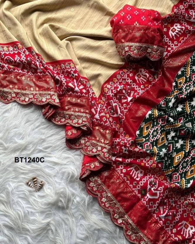 BT 1240 Colours Traditional Designer Ikkat Pallu Scalped Embroidery Sarees At Wholesale Price