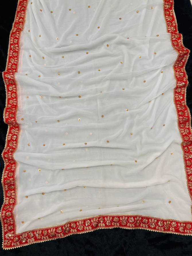 FabricSAREE FABRIC : HEVY GEORGETTE, SAREE WORK : FANCY DORI THREAD & SEQUNCE WITH, HANDCRAFTED BUTTI A MOTI WORK, SAREE 5.50 MTR | BLOUSE FABRIC : MONO THAI SILK | BLOUSE WORK : FANCY DORI WITH FANCY ZARI & SEQUNCE WORK, BLOUSE UNSTICHED