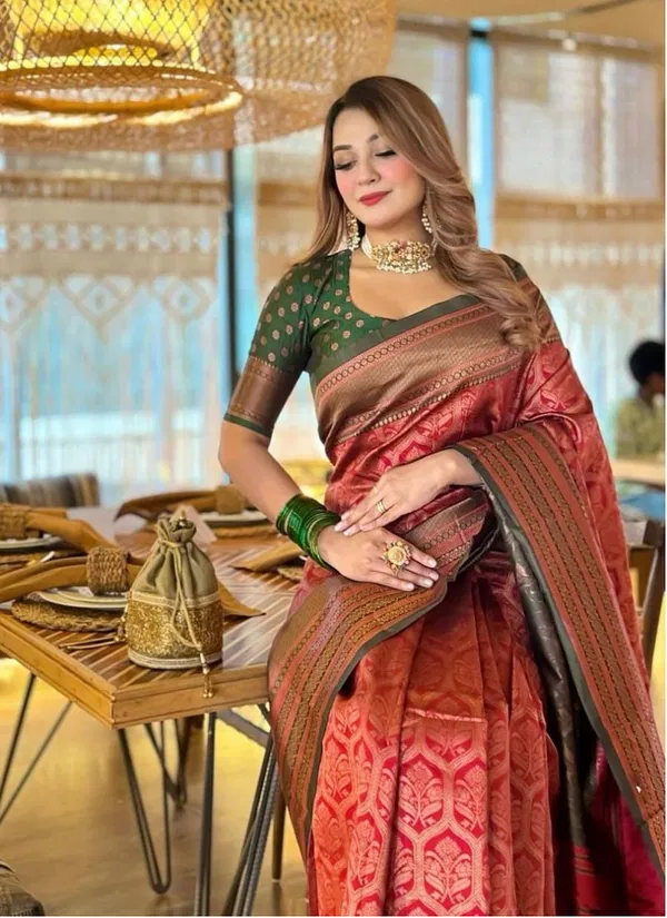SOFT LICHI SILK SAREE WITH EXTRA ORDINARY DESIGN & RICH PALLU MAKE SAREE BEAUTIFUL LOOK TO WEAR IT | BLOUSE : RUNNING WITH EXCLUSIVE BUTTI JAQUARD WORK