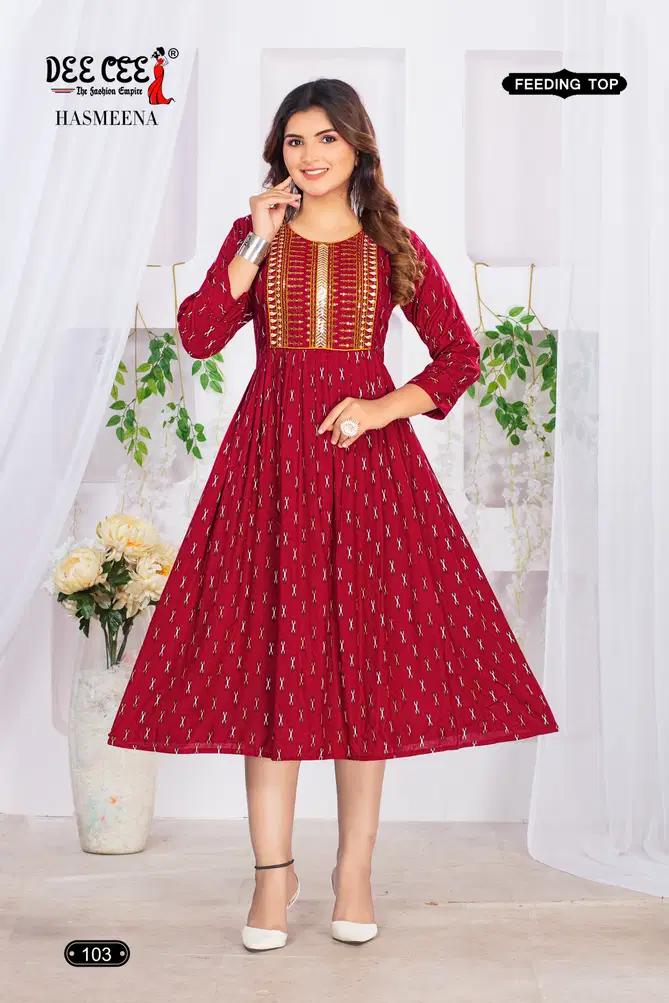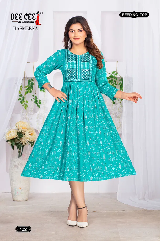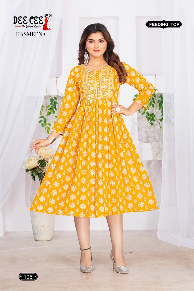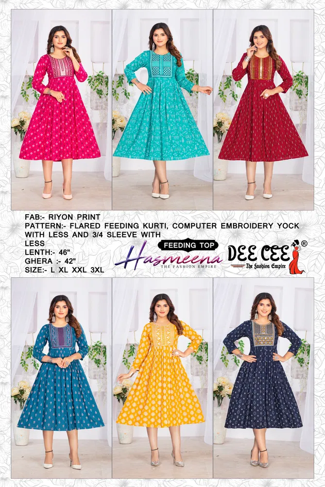 Deecee Hasmeena Rayon Printed Feeding Kurtis Wholesale Catalog
