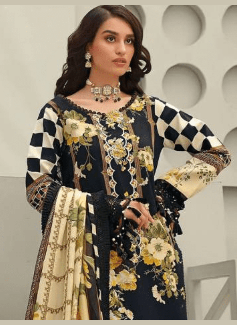 FabricTop -Pure cotton with embroidery | Bot – cotton solid with embroidery patch | Dup – Cotton Mal -Mal Print(Pakistani Copy)