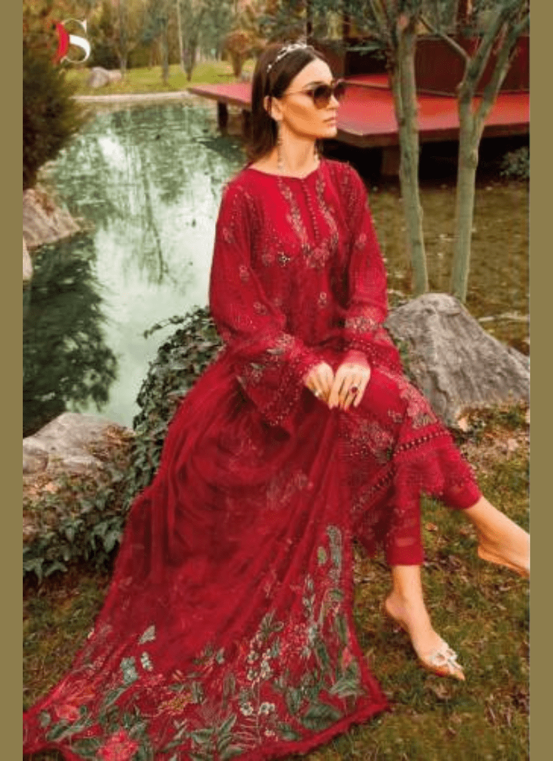 FabricTo: 4 Pcs – Pure Cotton Print with Heavy Embroidery 1 Pcs – Pure Cotton with Embroidery 3 Pcs – Organza with Inner & Heavy Embroidery | Bottam: Cotton Solid / Print | Dupatta: 4 Pcs – Net / Organza with Emb 2 Pcs – Cotton with Emb 2 Pcs – Cotton Print ( Pakistani Copy )