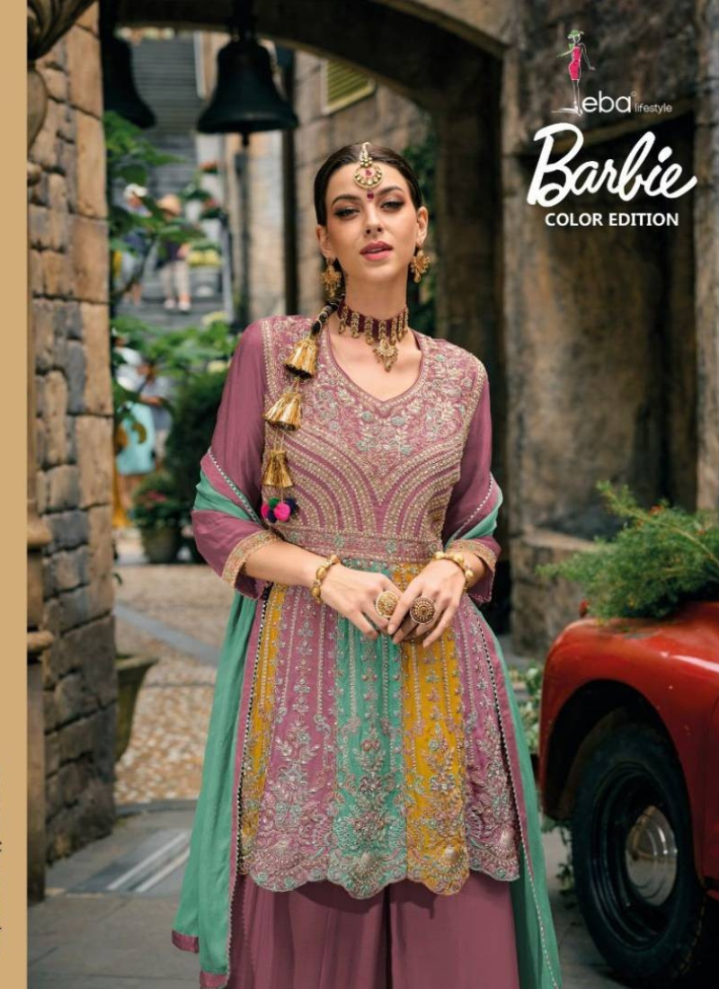 Eba Barbie Color Wedding Wear Sharara Readymade Suits At Wholesale Price
