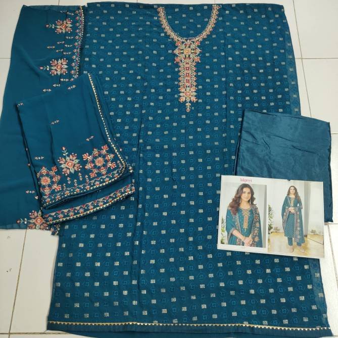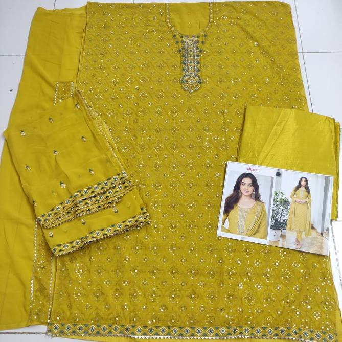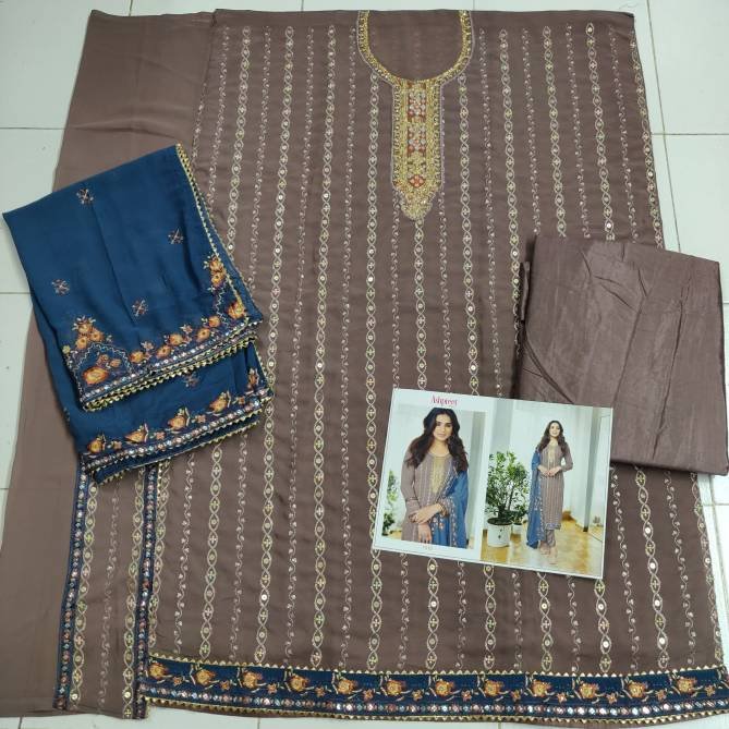 FabricTOP :- Heavy Georgette with Embroidery and Sequence work Size :- Max up to 54 ” length :- Max up to 46″ Inner :- Santoon (attach) BOTTOM :- Heavy Santoon DUPATTA :- Heavy Georgette & Chinon with Embroidery Works Single Available Rs.1599 per pcs