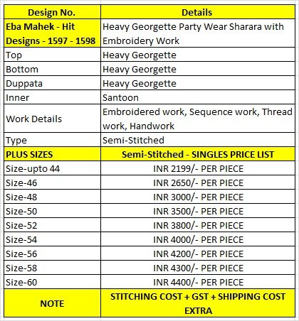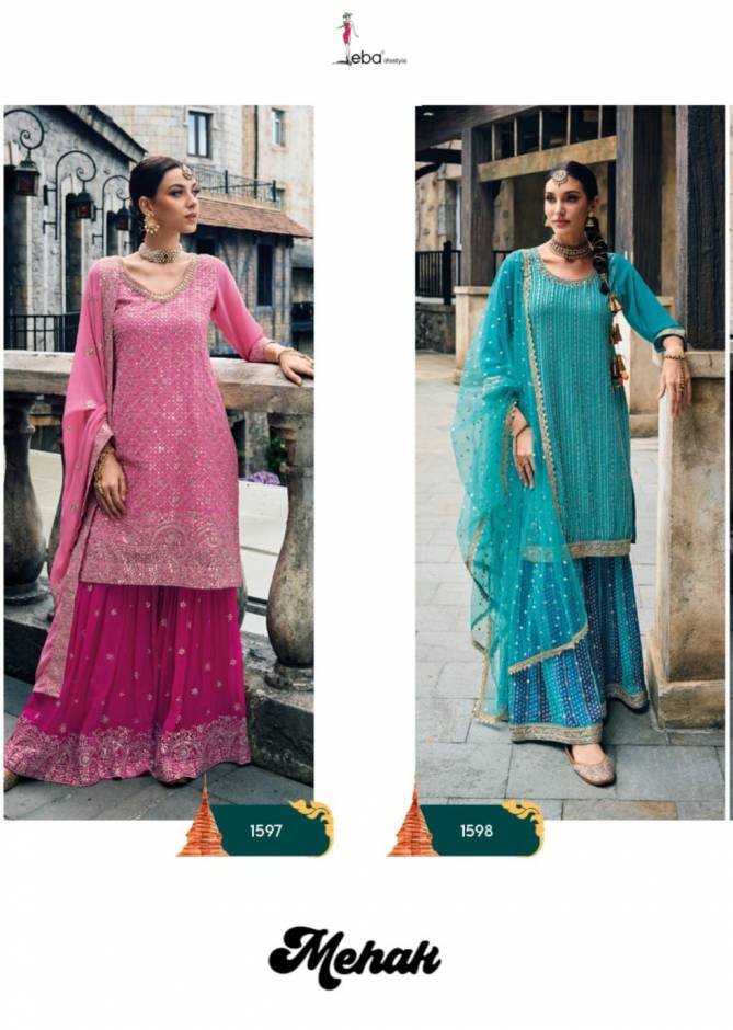 Eba Mahek Hit Designs 1597 And 1598 Festive Wear Sharara Suits Wholesale Catalog