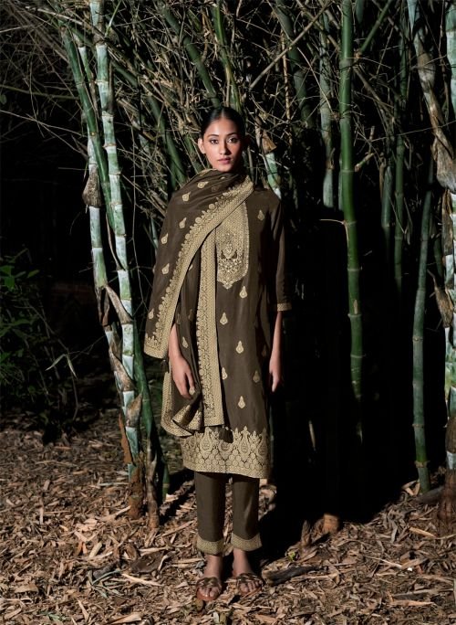 KURTI: PURE RUSSIAN LAKHNAVI JACQUARD WITH MX ZARI AND HANDWORK | BOTTOM: PURE VISCOSE SILK WITH JACQUARD ATTACHMENT | DUPATTA: PURE RUSSIAN LAKHNAVI JACQUARD WITH MX ZARI | LENGTH: 46″